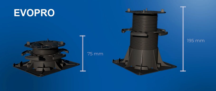 EVOLUTION PROFESSIONAL - kurz EVOPRO bezieht sich auf die kontinuierliche und bewusste Weiterentwicklung innovativer Stelzlagersysteme. Aus Jahrzehnten langer Erfahrung im Bereich Terrassen Unterkonstruktionen entstand eine neue Generation von Stelzlagern die alle Vorteile modernerTerrassenunterkonstruktionssysteme vereint, eine sogenannte Eier legende Wollmilchsau - ein Produkt von Profis für Profis für professionelle Projekte
